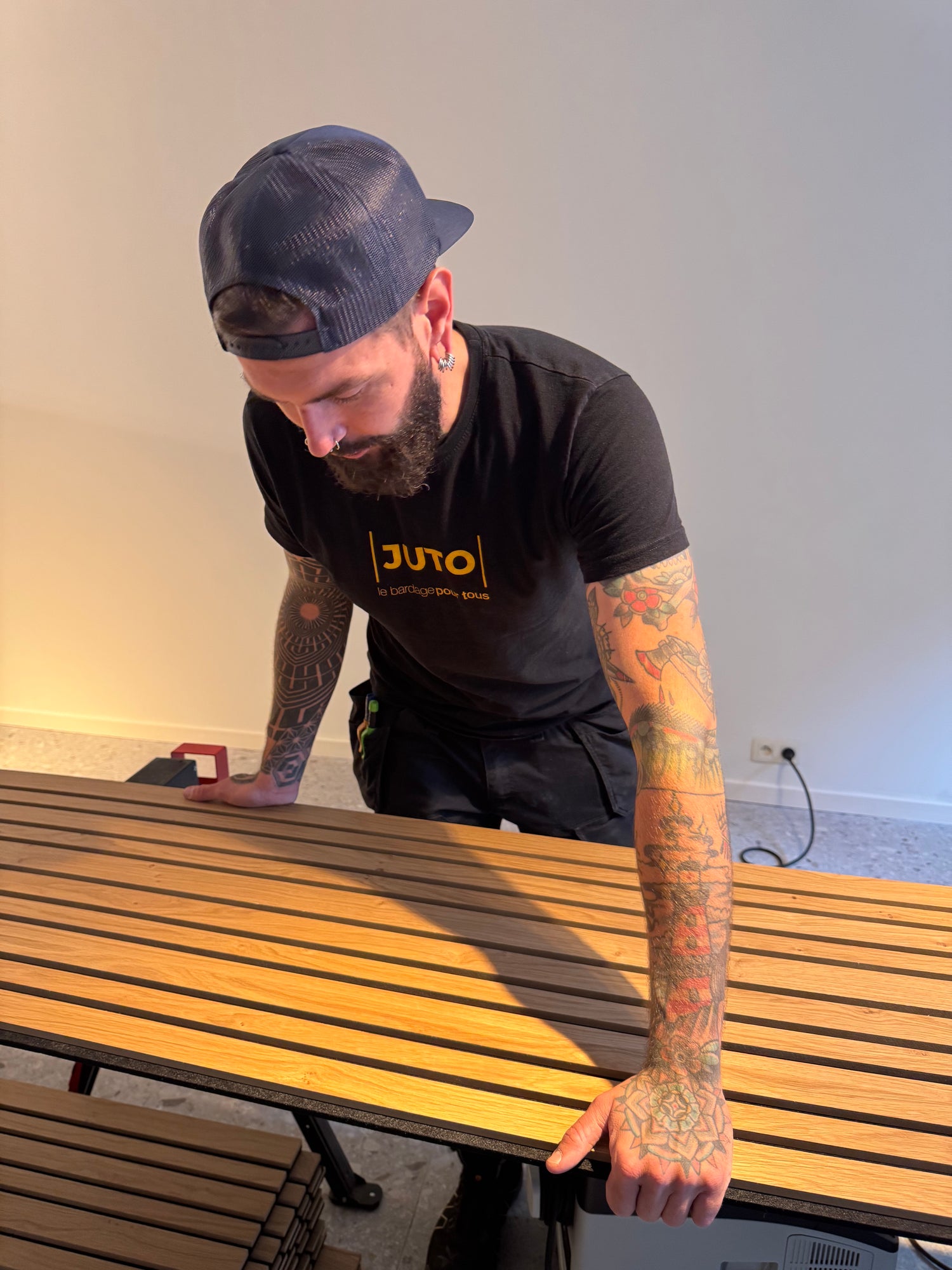l'équipe de Juto est venue placer des panneaux charcoal dans notre grand hall d'entrée. Le résultat est bluffant ! Travail soigné, équipe sympa et rendu au-delà de nos espérances.